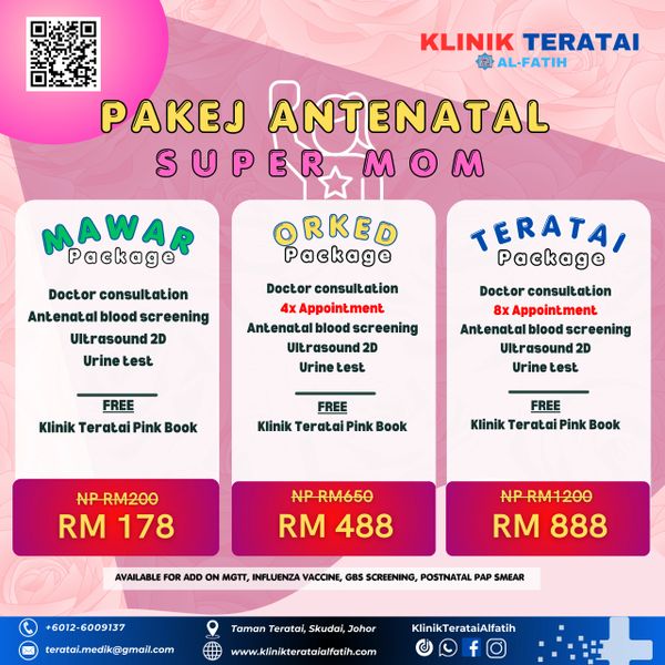 AVAILABLE FOR ADD ON FOR ULTRASOUND - MGTT, Influenza vaccine, GBS screening, Postnatal pap smear Skudai